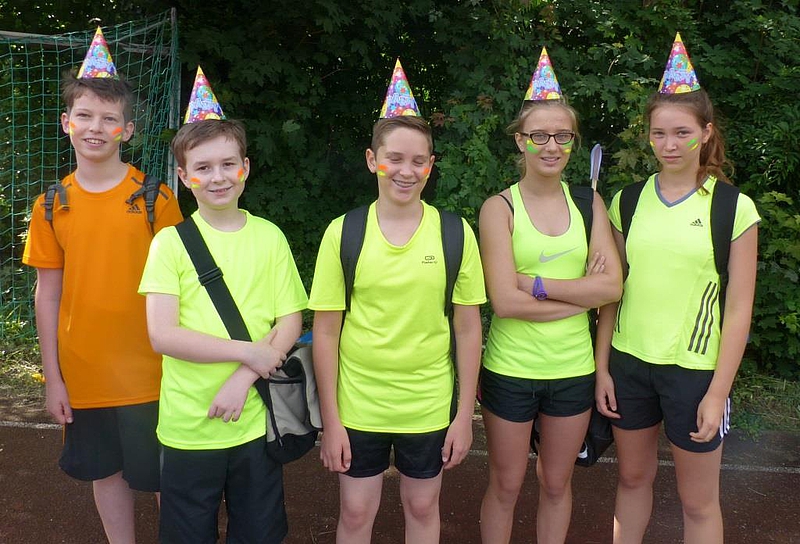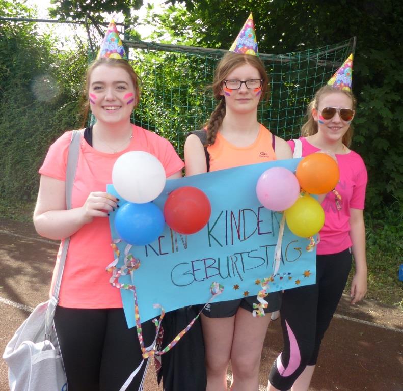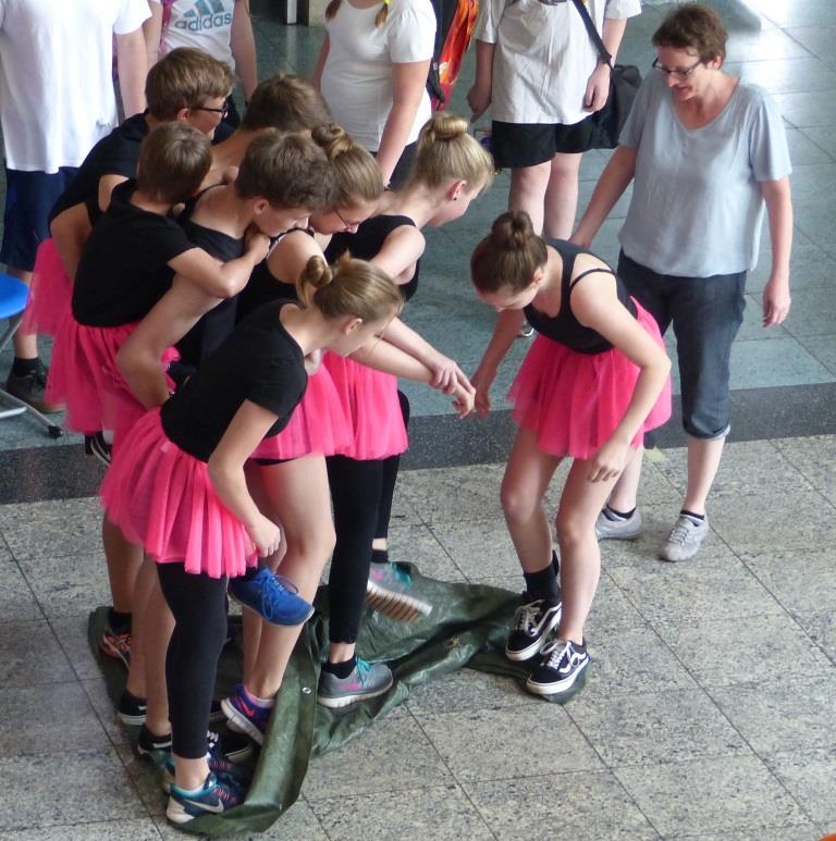 „Unser Team heißt >Prima Ballerinas<“, verriet eine Schülerin der Unterstufe im Vorfeld, „und wir tragen als Team-Kleidung alle Tutus, sogar die Jungen!“ Dieser modische Wagemut verdiente die Belohnung mit dem Preis als bestes Outfit, machte aber auch deutlich, mit welchem Enthusiasmus sich die gemischten Teams aus unterschiedlichen Jahrgangsstufen plus Erwachsene in die Spiele stürzten.