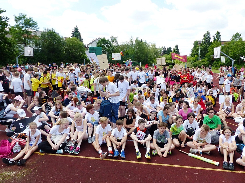 Am Ende galt der Dank der Sportlehrer, die den Tag perfekt vorbereitet hatten, den helfenden Lehrern, Eltern und Schülern. Angesichts zahlreicher helfender Hände war auch der Abbau der Spielstationen überraschend schnell abgeschlossen. Der emotionale Höhepunkt des Tages war jedoch erreicht, als Herr Bill beim Kollegen Ammer anrief, der sich im Vorfeld unglaublich auf die Spiele gefreut hatte, dann aber leider erkrankt war: Die laut gerufenen Genesungswünsche eines ganzen Sportplatzes erreichten ihn so zumindest per Telefon.
