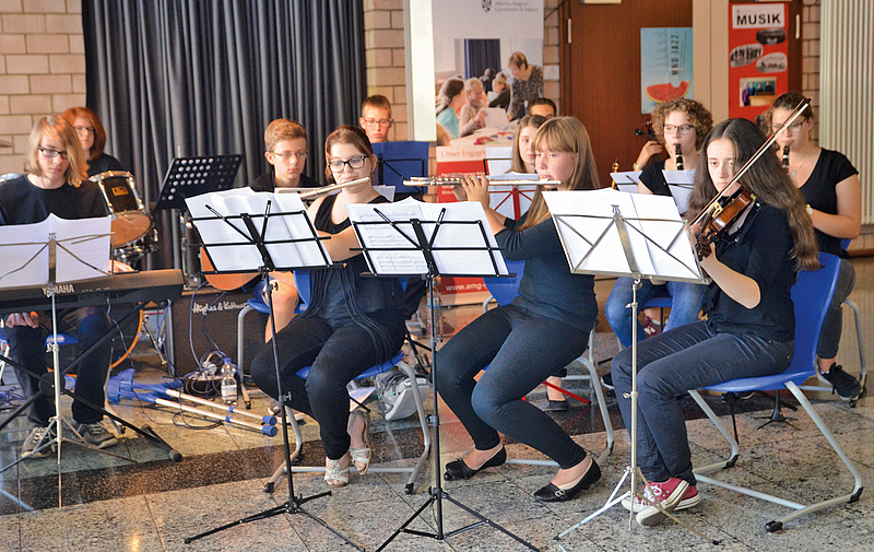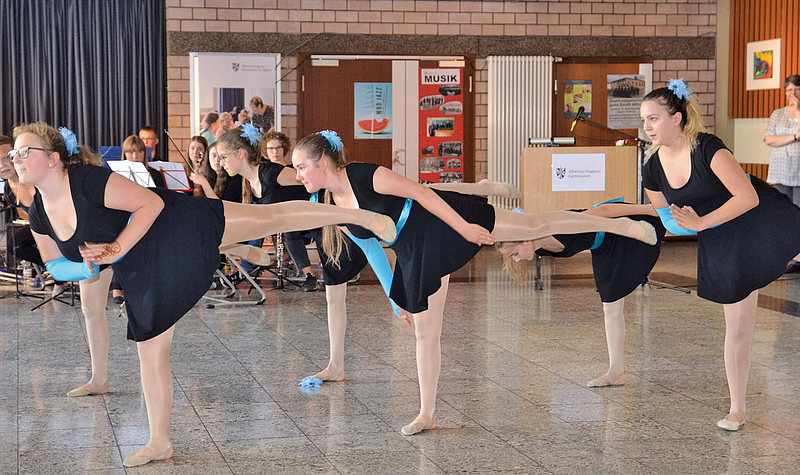 "Weißt du noch?" und "Erinnerst du dich an?" waren häufige Satzanfänge beim Ehemaligentreffen am AMG, zu dem sich über 300 Absolventinnen und Absolventen aus allen Jahrgangsstufen zusammenfanden. Die Combo unter Herrn Hahnhaußen und eine Tanz-Gruppe unter Leitung von Frau Erlemeier stellten den feierlichen Rahmen bereit, Eltern hatten für die Verköstigung gesorgt, die Abiturienten des Jahres 2016 kümmerten sich um die Getränke, so dass die Gäste nichts tun mussten, als in ihren zahlreichen Gesprächen fröhliche und besinnliche Momente wieder aufleben zu lassen. Ebenso konnte man einen Blick ins Fotoalbum werfen oder aber schauen, was sich innerhalb der ins Land gegangenen Jahre im Schulhaus so alles verändert hatte.