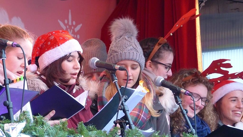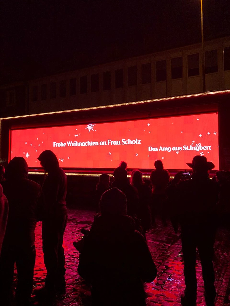 Eine geschlossene Schneedecke und tiefe Temperaturen prägten das Wetter am zweiten Advent. Auf Einladung der Abteilung Stadtmarketing des St. Ingberter Rathauses beteiligten sich zwei Gruppen des AMG beim Programm der Cola-Weihnachtstrucks auf dem Marktplatz. Das Vokalensemble trug unter Leitung von Herrn Ganster Auszüge aus seinem reichhaltigen Repertoire an Weihnachtsliedern vor. Abends erinnerte das Seminarfach von Frau Erlemeier an den Solilauf im vergangenen September, dessen Gesamtergebnis zwar bereits feststeht, aber erst beim Neujahrsempfang der Gemeinde bekanntgegeben wird.