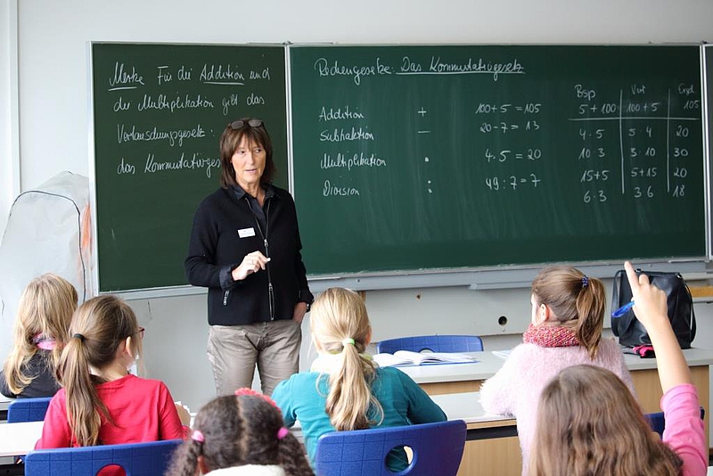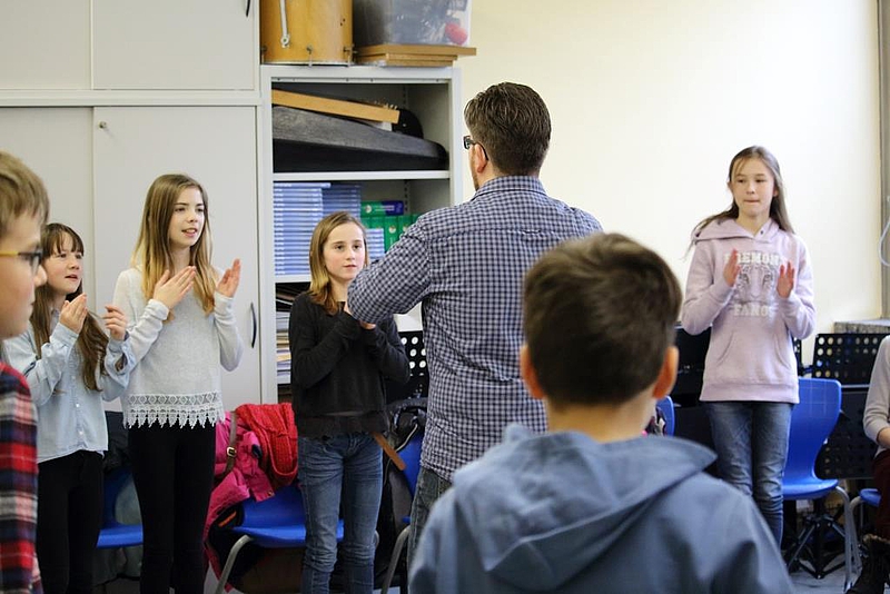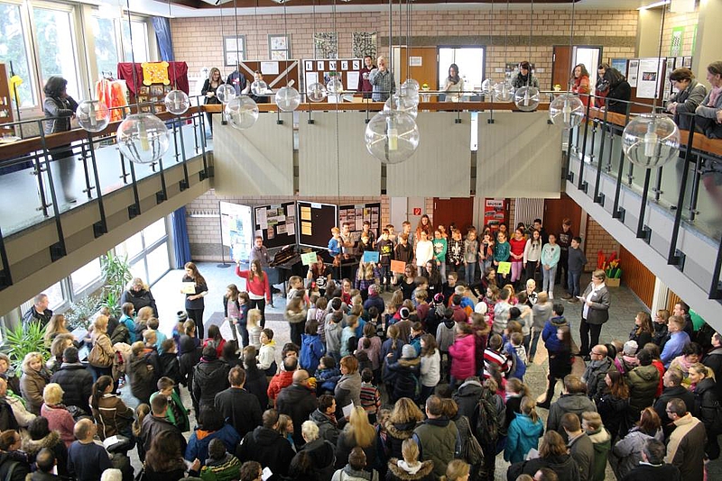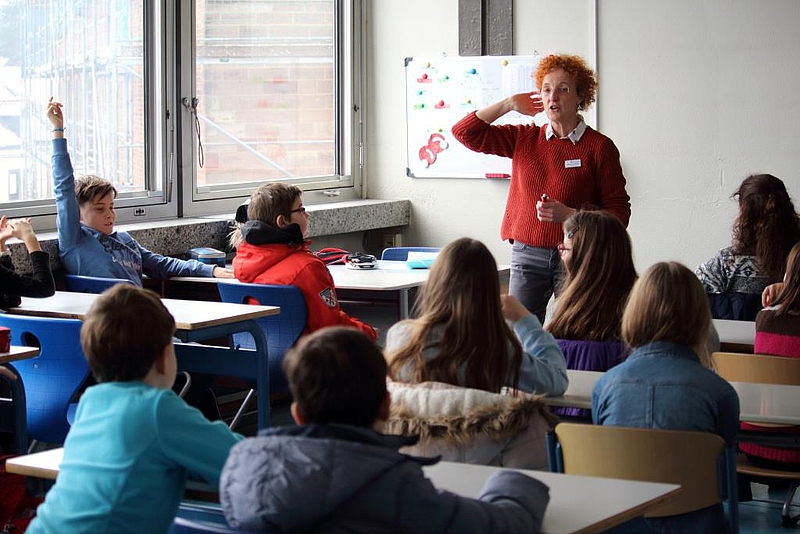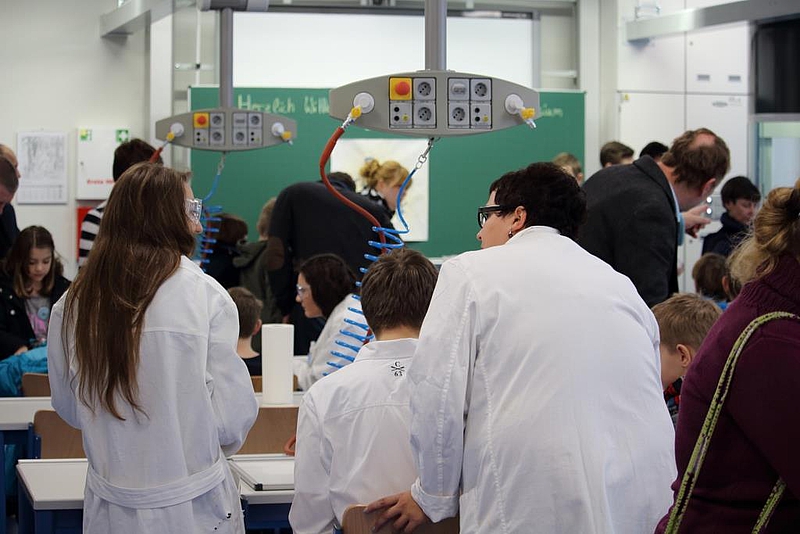 Trotz der schwierigen Verkehrsverhältnisse nach dem ersten Schnee besuchten zahlreiche Eltern mit ihren Kindern im vierten Grundschuljahr den Info-Tag des AMG. Dort wurden zunächst die Jungen und Mädchen in Farben-Gruppen eingeteilt und besuchten Schnupper-Unterricht in den drei Hauptfächern. Dabei wurden sie von Schülerinnen und Schülern der Oberstufe gut betreut. Die Eltern wurden derweil von der Schulleitung informiert wurden oder kamen gleich ins Gespräch mit den Lehrerinnen und Lehrern oder Eltern, die bereits Kinder an der Schule haben. Die letzte Phase des Info-Tages war Mitmach-Angeboten der einzelnen Fächer gewidmet - mancher Viertklässer war so in Tüftel- und Knobelspiele vertieft, dass er sich zuletzt nur mit Mühe trennen konnte.