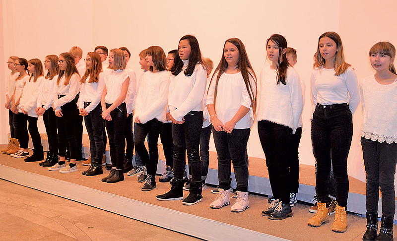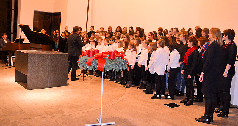 Für eine besinnlich-weihnachtliche Stimmung sorgten an diesem Abend der Unterstufenchor von Barbara Buchheit, die Chorklassen, das Vokalensemble und der ELSchE-Chor unter der Leitung von Andreas Ganster sowie der Musik-Neigungskurs und das Seminarfach der Klassenstufe 11 von Frank Hahnhaußen mit einem kurzweiligen Programm aus klassischen Weihnachtsliedern und modernen Christmas-Songs. Zum Finale sangen und spielten alle ca. 150 Mitwirkenden gemeinsam mit dem Publikum einen Kanon.
